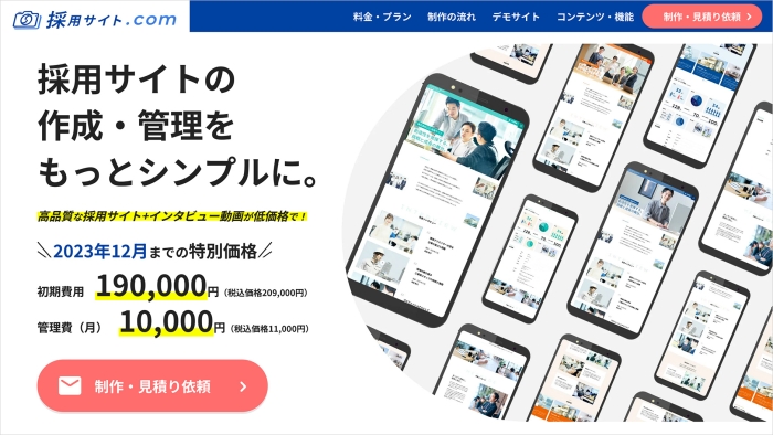 採用サイト.comは、採用サイトの作成と管理をシンプルに提供するサービスです。